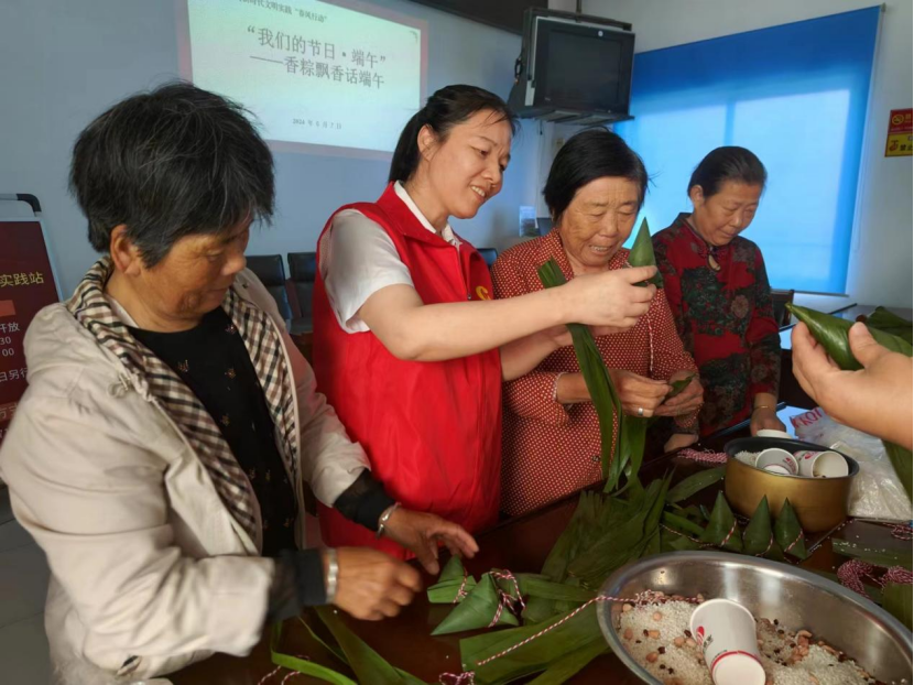 接着,在村居志愿者的指导下,村民们纷纷动手包起了粽子。有经验的老人教年轻人如何将粽叶折叠成漏斗形状,再将浸泡好的糯米、红豆、花生等馅料填入粽叶中,最后用细线将粽子扎紧。整个过程中,大家互帮互助,欢声笑语不断,不仅加深了邻里之间的感情,还学会了包粽子的技巧。