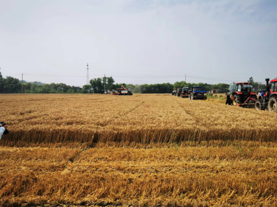 兴化市戴南镇今年小麦种植面积14.46万亩。镇党委、政府要求全体镇村干部沉到一线,指挥协调,突击抢收,确保颗粒归仓。镇里统一调度协调联合收割机、旋耕机,开展农机大会战,日投入各类机械近千台,秸秆全量还田面积占98%以上。