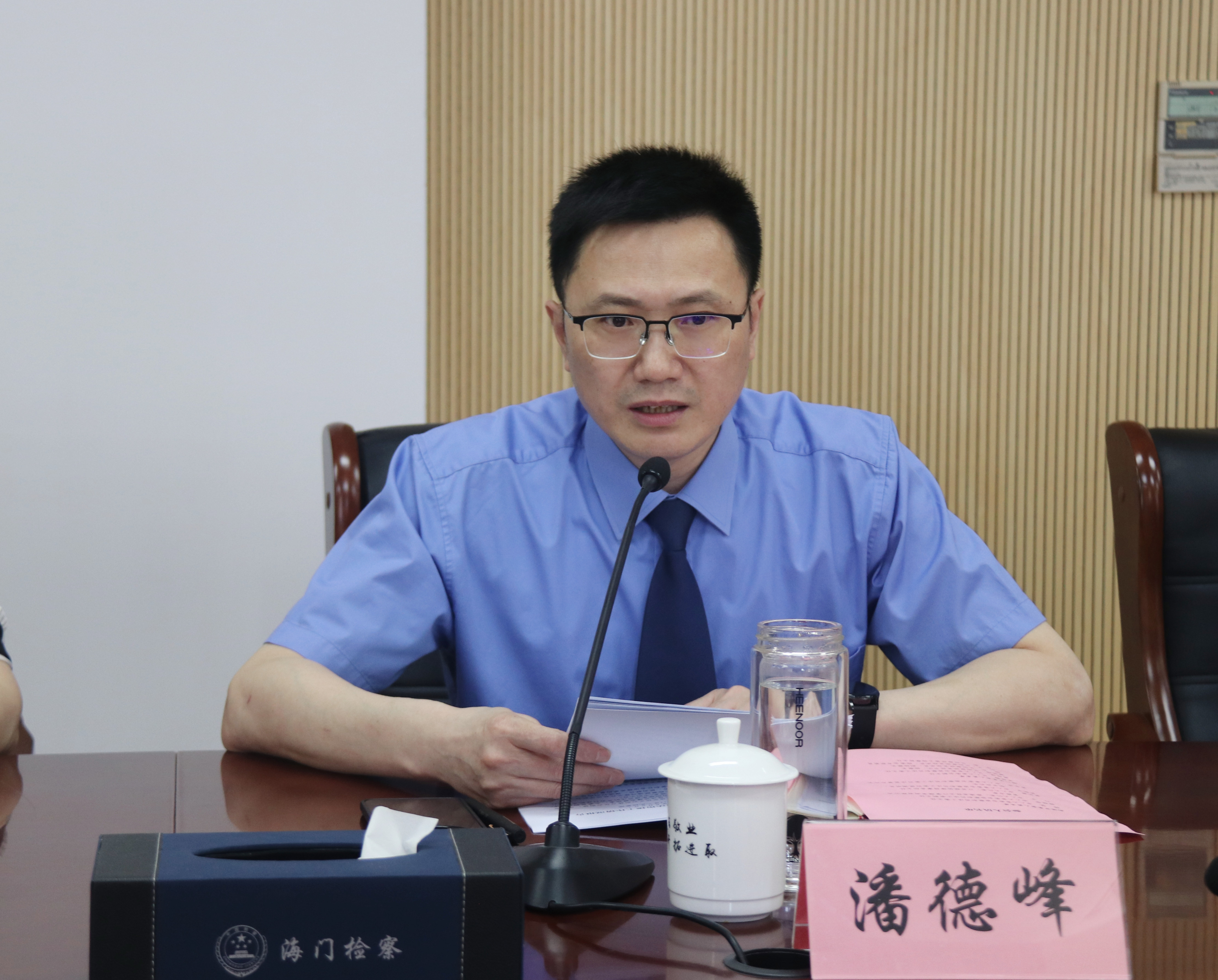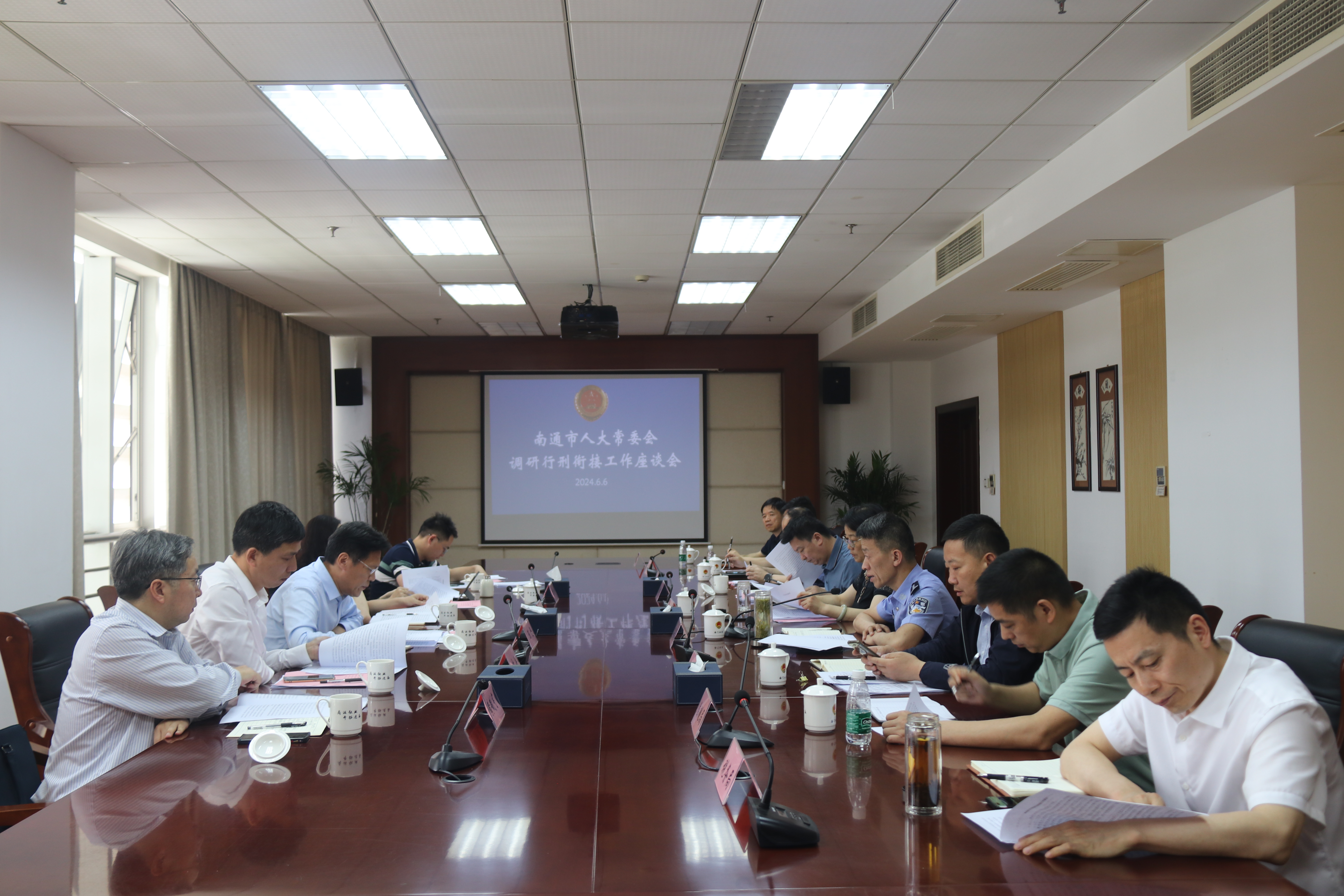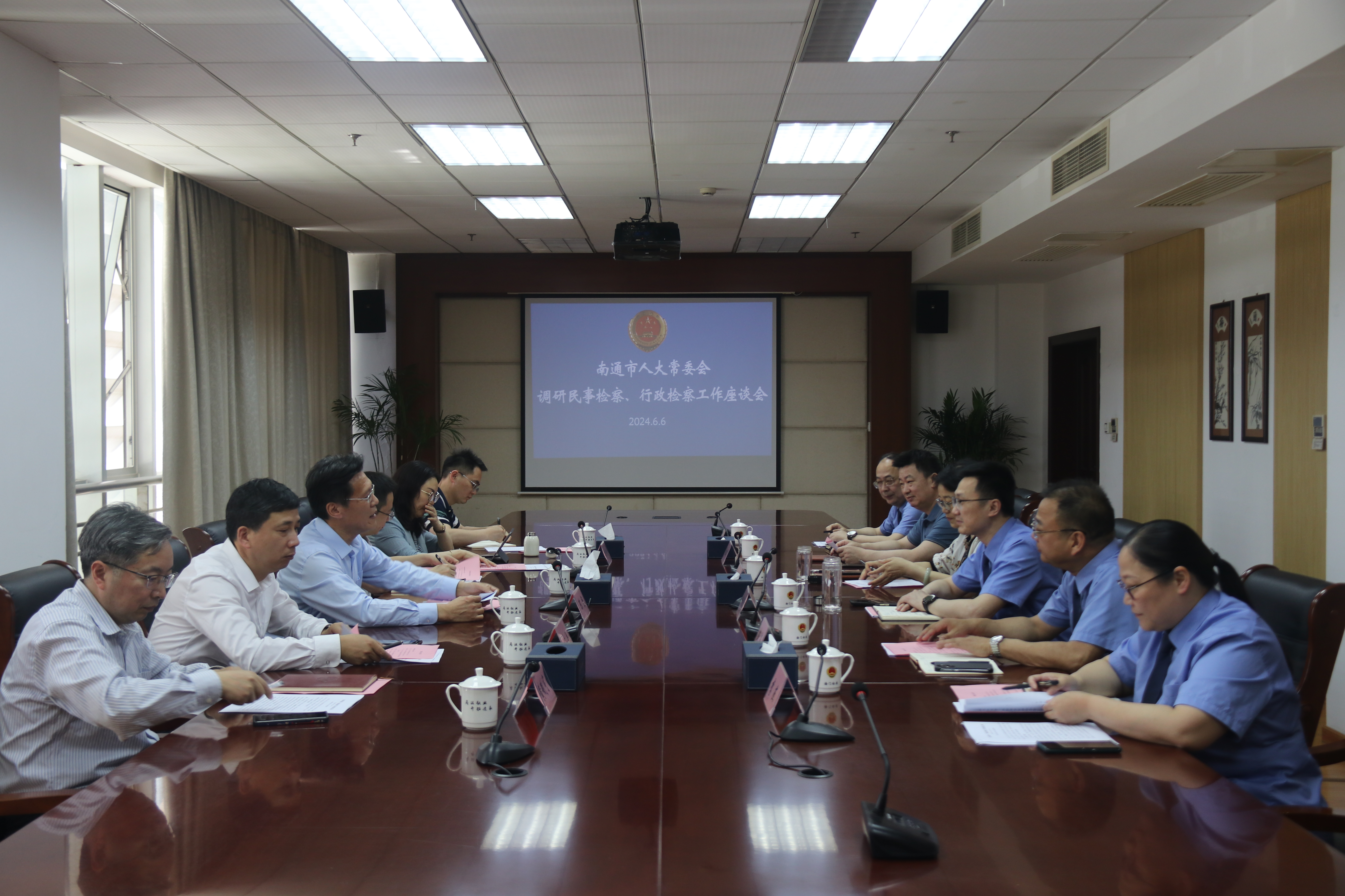 6月6日下午,南通市人大常委会监察和司法工委主任陈坚率调研组到海门区检察院就民事检察、行政检察及行政执法与刑事司法衔接工作情况开展专题调研。海门区人大常委会副主任姜晓静,区人大常委会监察和司法工委主任周祖斌,海门区检察院党组书记、检察长潘德峰,副检察长陈东、检委会专职委员朱卫等参加调研。