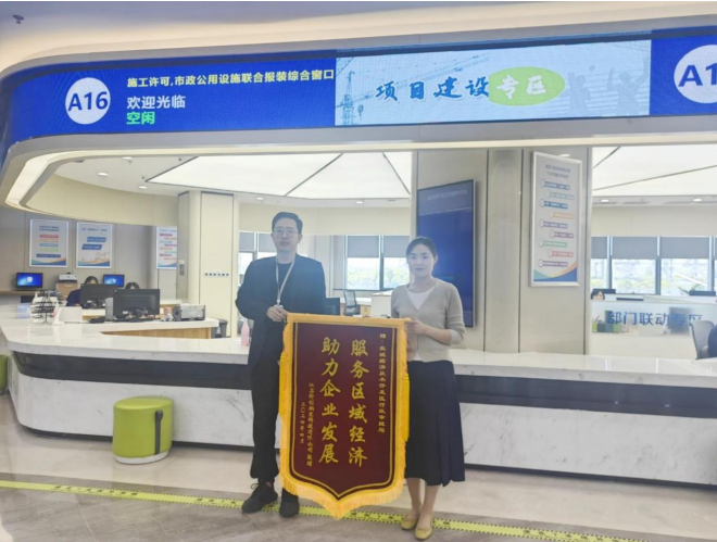 近日,江苏珩创纳米科技有限公司代表将一面印有“服务区域经济 助力企业发展”的锦旗送至盐城经济技术开发区行政审批局工程项目建设审批窗口,对工作人员在公司年产1万吨磷酸锰铁锂正极材料项目建设过程中给予的高效审批服务表示感谢。