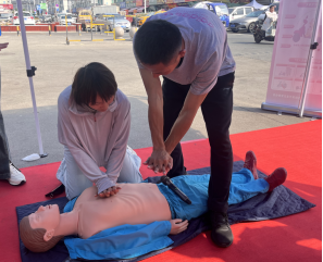 江苏省城市安全技术研究院的应急救援培训人员给大家做心肺复苏、海姆立克急救法展示,并且手把手指导学员学习急救的正确位置和手势。现场学员体验学习破窗器的正确使用方法,掌握紧急情况下车内逃生的基本技能。