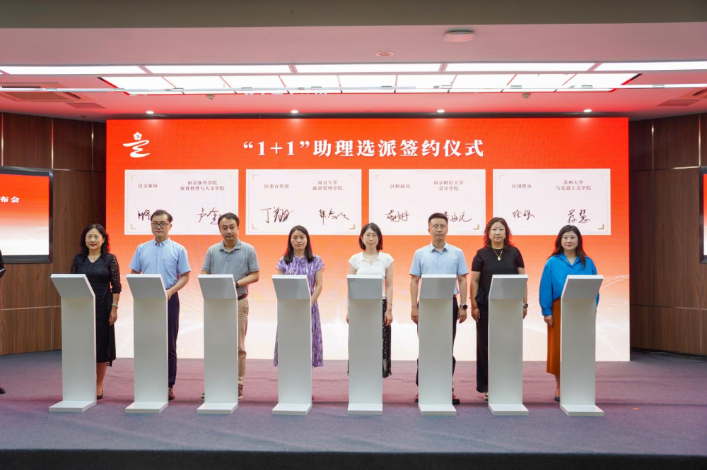 在市委组织部“红链强质”十项举措文件指导下,玄武区率先探索实践产业链党建“1+1”助理选派模式,9所区内外知名高校与6家重点企业、4家政府部门进行了“1+1”助理现场签约。