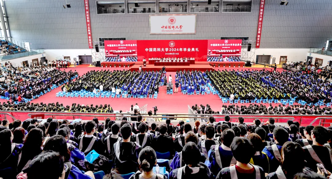6月18日,中国药科大学举行2024年毕业典礼。在中国药科大学江宁校区体育馆,近4000名毕业生身着学位服,为大学生涯画下圆满句号。四年前,来自五湖四海的他们,如今将带着“中国药大人”的身份与使命,奔赴星辰大海。