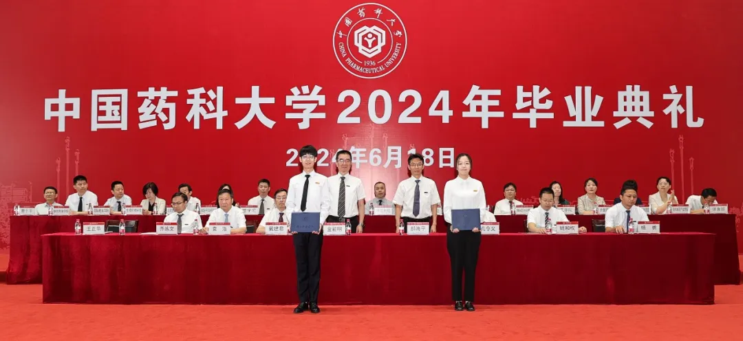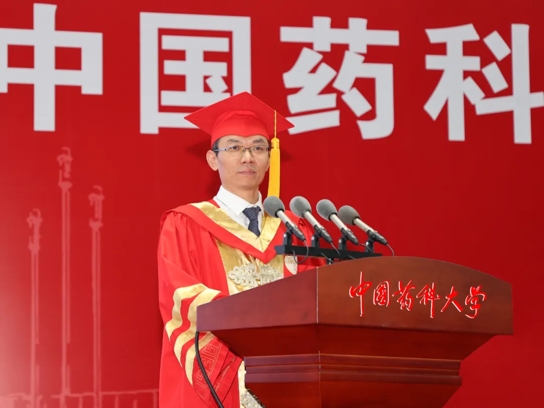 毕业典礼上,校党委书记金能明、校长郝海平为毕业生代表颁发毕业证书。郝海平在致辞中表示,“精业济群”的校训精神,是一种信念的指引,是一代代“中国药大人”在历史进程中接续自我定位、自我革命的生动写照。郝海平提出,要准确识变,洞察行业大势;要科学应变,直面现实挑战;要主动求变,引领全新发展。“我希望你们永远有中国药大人的底气、信心和勇气,战胜一切艰难险阻,为人类、为祖国、为母校作出更大贡献。”郝海平说。