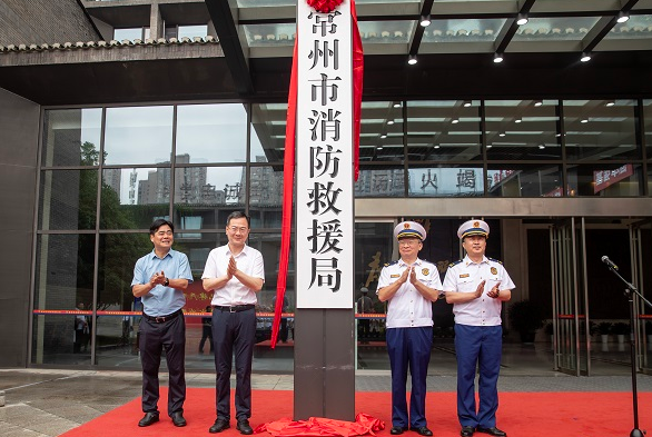 按照国家消防救援局工作部署,6月25日,全国对应行政区划设置的407个消防救援支队统一加挂驻地消防救援局牌子。上午10时,常州市消防救援局正式挂牌。市委常委、常务副市长李林,市应急管理局局长岳军出席仪式;市委宣传部、市委政法委、市委编办、发改委、教育局等38家单位代表参加仪式。