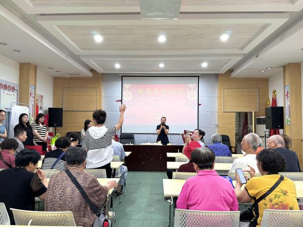 紧接着,普德村社区党总支隆重举行了“光荣在党50年”纪念章的颁发仪式,以表彰那些为党的事业奋斗了半个世纪的杰出党员。同时,社区还为入党满10年、20年、30年、40年的党员们精心准备了纪念卡片,以铭记他们长期以来对党的忠诚与奉献。这些纪念卡片不仅是对他们辛勤付出的认可,更是对他们坚定信仰和不懈努力的肯定。