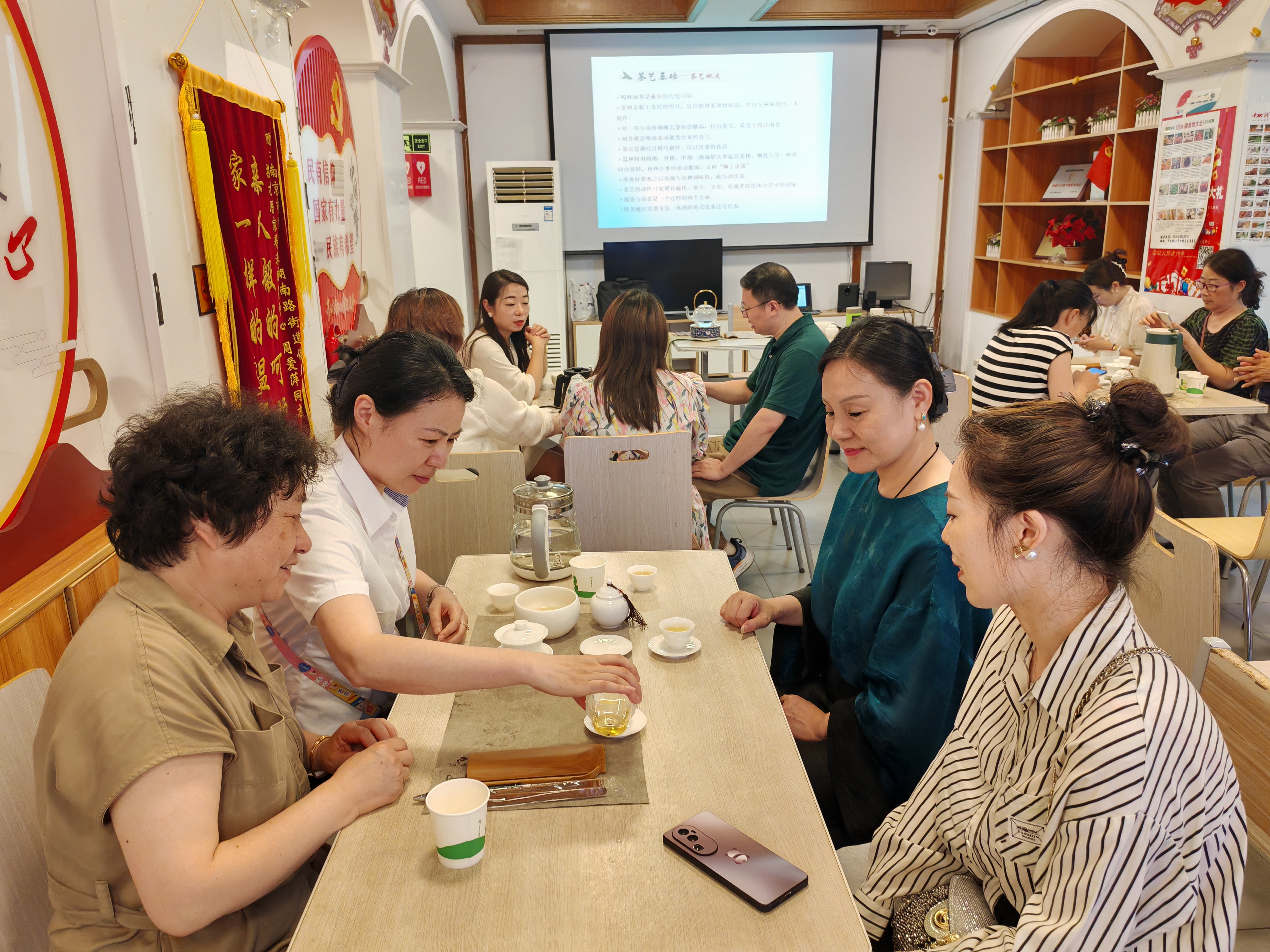 6月26日,南京湖南路街道联合紫峰·红石榴家园在傅厚岗社区开展“共品茶香韵 汇聚‘新’力量”茶文化赏析活动。