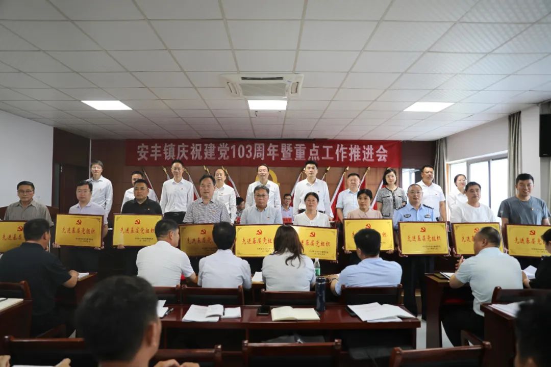 安丰镇人大主席赵信珠宣读《中共东台市安丰镇委员会关于表彰先进基层党组织、优秀党务工作者、优秀共产党员的决定》。会议为受表彰的先进基层党组织、优秀党务工作者和优秀共产党员举行了颁奖仪式。副镇长胡小东通报了二季度农村工作考核情况及三季度考核内容。镇领导为二季度考核前八名的红安、五进、下灶、跃进、安东、联合、丰西、丰新等村居颁奖。