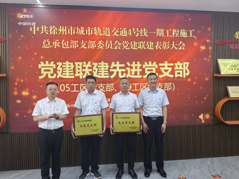 近日,徐州地铁4号线总承包部召开2024年党建联盟先进表彰大会。会上,中铁十一局集团第四工程有限公司徐州SGTJ4109工区项目党支部荣获“党建联建先进党支部”称号,工区书记叶辉强荣获“党建联建优秀党务工作者”称号,工区长曹鹏和关正义同志荣获“党建联建优秀共产党员”称号。