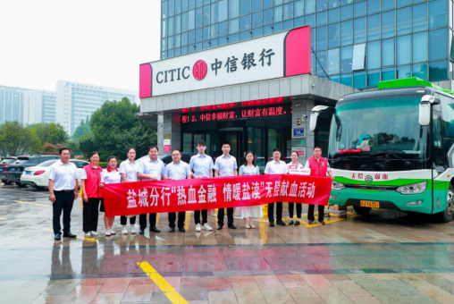 7月以来,中信银行盐城分行先后举办“热血金融 情暖盐渎”义务献血、“爱暖童心·相伴成长”慈善捐款活动,以实际行动践行社会责任,传递“中信温度”。