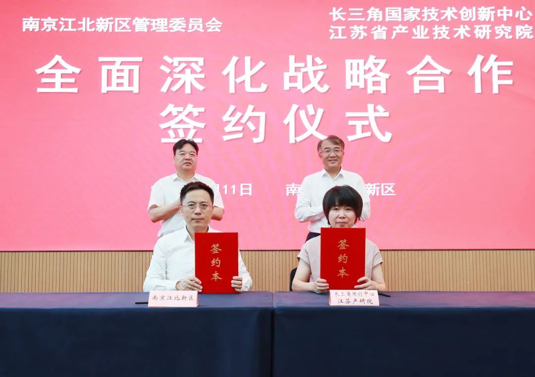 7月11日,南京江北新区与长三角国家技术创新中心/江苏省产业技术研究院全面深化战略合作协议签约仪式举行。市委常委、江北新区党工委书记陆卫东,长三角国创中心主任、江苏产研院院长刘庆出席仪式并致辞。长三角国创中心副主任、江苏产研院党委书记罗扬,江北新区党工委委员、管委会副主任陈文斌参加活动。