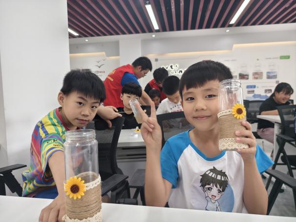 一场游戏竞赛后,大家热情不减,随即又进入到“翻盖垃圾桶”模型的制作中,孩子们利用木板、螺丝钉等简单的材料,经过一番努力,纷纷完成了自己的作品。垃圾分类传递着孩子们对劳动教育的思想认同、情感认同、价值认同,引导青少年将这些理念融入自己的日常生活中。