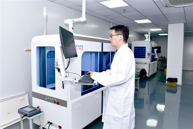 作为国内领先的医学诊断整体解决方案综合服务提供商,位于临港科创园的江苏瑞质生物科技有限公司持续加大研发投入,打造一流的研发实验室及中试平台,不断向产品和市场的高端攀登。目前,该企业已与全国百余家医疗机构开展合作。图为工作人员正在对企业自主研发的全自动样品前处理系统进行测试。(丁家骏)