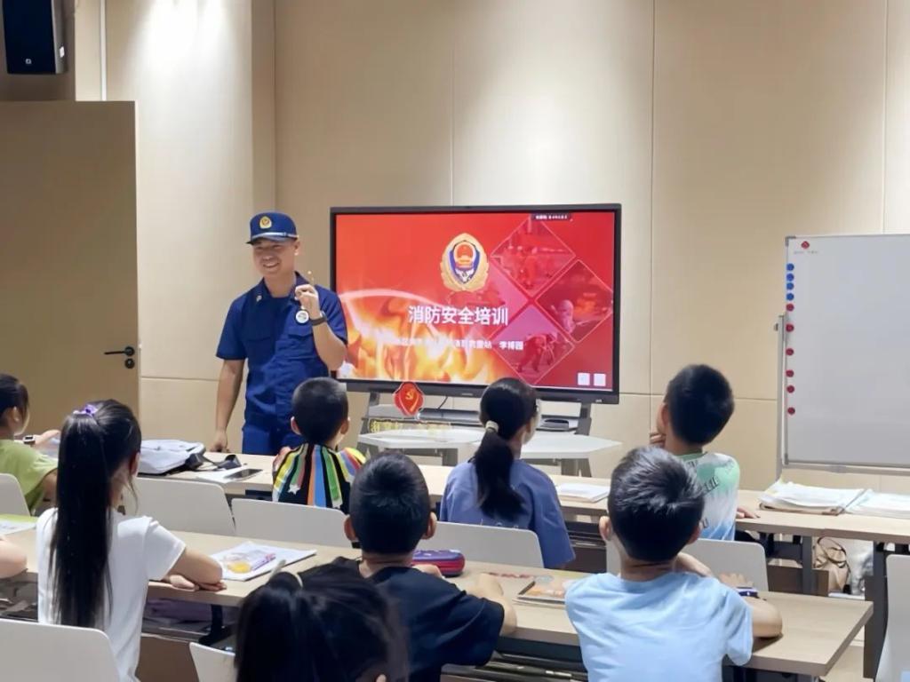 为提高孩子们的安全防范意识和自我保护能力,枫桥街道联合禁毒站、消防救援大队等单位,在办班点位开展“安全教育第一课”,为暑托课程之旅架起“安全护栏”。
