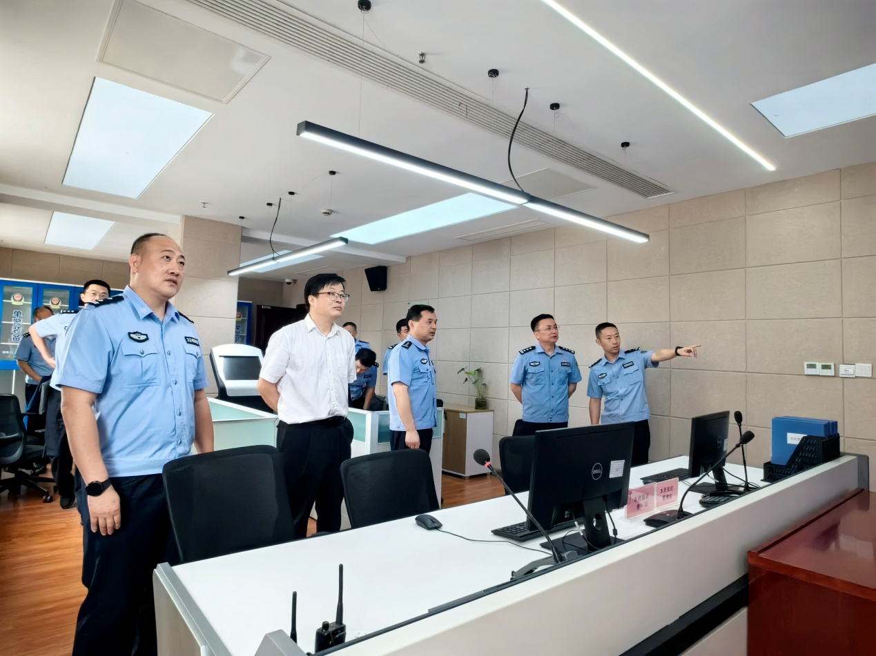 检查组一行实地查看了海门法院安检大厅、“六专四室”、刑事法庭、警务指挥中心等重点场所,通过查阅工作台账、现场问询等方式,详细了解了该院安检工作、庭审警务保障、预防处置突发事件、办公区和审判区域安防风险排查、警务安防设施建设等情况。