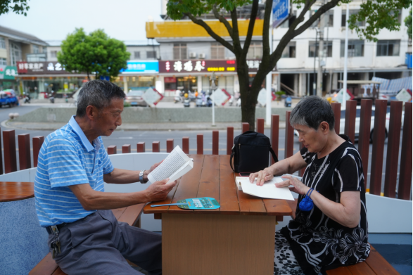 长廊溢书香,读书润心田。黄金社区结合居民日常需求,利用新时代文明实践站门前空地打造“悦”享长廊。居民们在这里共同探讨日常读书经验,畅谈读书感想和心得,分享经典书籍,相互学习进步,成为了居民家门口“充电”的好去处。近日,黄金社区在长廊内开展“听党话、感党恩、跟党走”宣讲活动。活动现场,“五老”宣讲团成员以通俗易懂的语言和互动交流的形式,讲述了过去十年来党和国家事业取得的重大成就,并结合身边人身边事,让居民感受到社区的发展变化以及党的惠民政策带来的好处。宣讲结束后,居民围坐在一起拉家常、颂党恩、话未来,久久不愿离去。“坐在家门口就能学习党的理论知识,用这种方式宣讲,大家愿意听、听得懂、记得住。”魏大爷连连赞叹道。