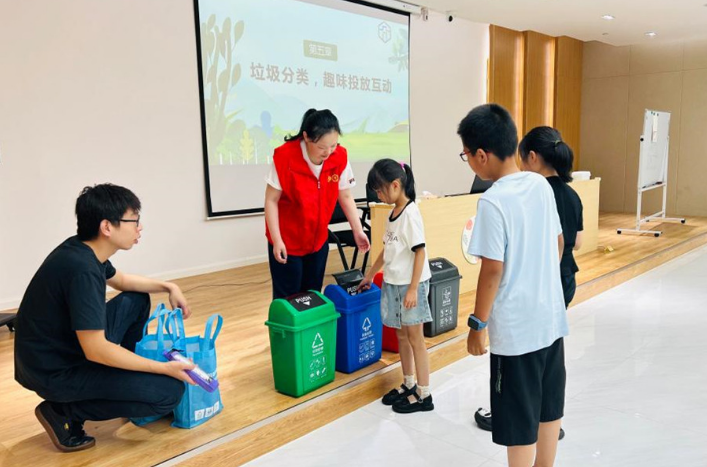 “小朋友,你知道香蕉皮属于什么垃圾呀?”“废弃药品应该丢进哪个垃圾箱呢?”……近日,在苏州市相城区黄埭镇古宫社区暑托班的课堂上,工作人员正在和小朋友们进行生活垃圾分类知识互动游戏。