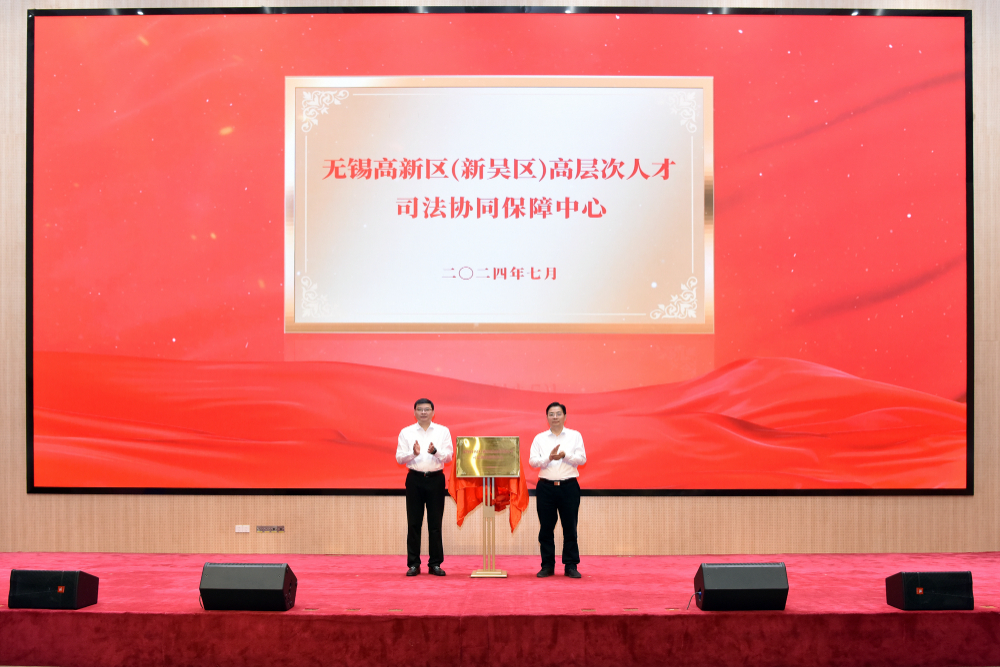 近日,“法润才企 近悦远来”无锡高新区(新吴区)高层次人才司法协同保障中心启动仪式举行。市中级人民法院党组书记、院长钱斌,无锡高新区党工委书记、新吴区委书记崔荣国共同为“无锡高新区(新吴区)高层次人才司法协同保障中心”揭牌。区领导韩杨、王庆春,市中级人民法院副院长杨志钢,无锡高新区(新吴区)人民法院党组书记、院长刘一勤等出席仪式。