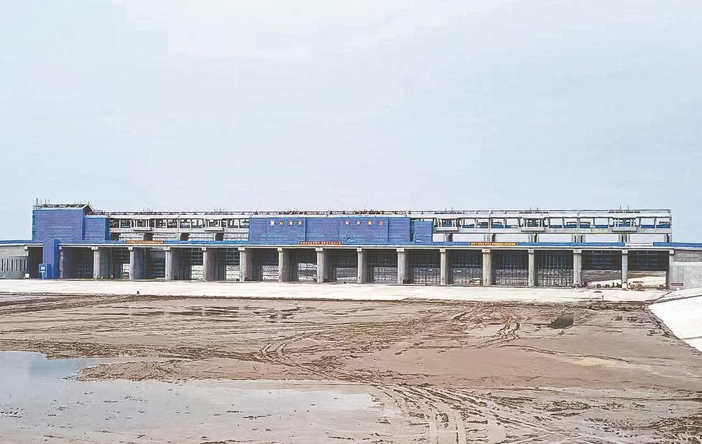 新洋港闸下移工程新闸主体工程通水验收后,将为工程北侧垦区汛期排水以及后续生态补水闸实施提供保障。(张学法)