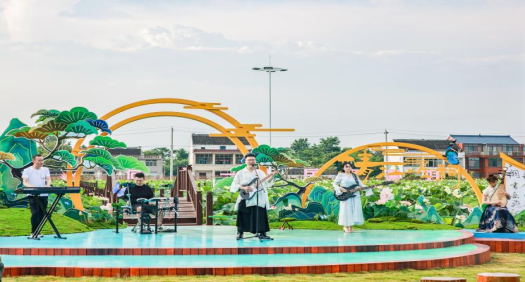 烟雨朦胧中,一出好戏在生祠镇东进村的七彩荷塘正式上演。