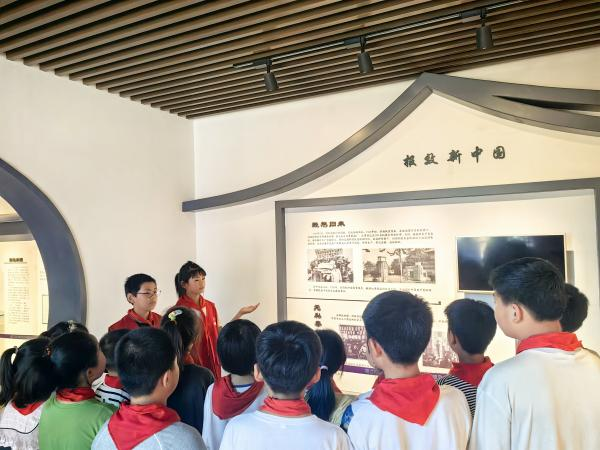 生祠镇因岳飞生前建成的祠堂而得名,历史悠久,人文荟萃,忠义精神世代相传。“刘国钧先生是我国现代杰出的实业家、著名的爱国民族工商业者,他一生历经风雨考验,却始终初心不改……”暑托班的孩子们变身“红领巾”志愿讲解员声情并茂地讲述着刘国钧奋进的一生。通过身临其境、亲身讲述,让爱国种子深埋进每个孩子的心灵深处。走进红色东进纪念馆,一件件珍贵的历史文物,一段段详实的文字说明,一张张清晰的图片,青年讲解员带着孩子们重温革命历程,从中汲取智慧和力量、砥砺信心和勇气,让红色基因代代相传。