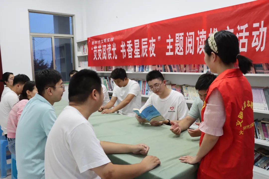 为进一步丰富活跃群众夜间文化生活推动文明实践“活”起来、“热”起来,引导群众在文明实践课堂中“受教育、长才干、作贡献”,兴化市大邹镇围绕“点亮星夜”,开展“荧荧阅读光 书香星辰夜”主题阅读推广活动。夜幕低垂,兴盐村农家书屋内灯火通明,志愿者邹蓝青向大家介绍了举办此次夜读活动的意义和目的,号召大家养成“多读书、爱读书、善读书”的好习惯。