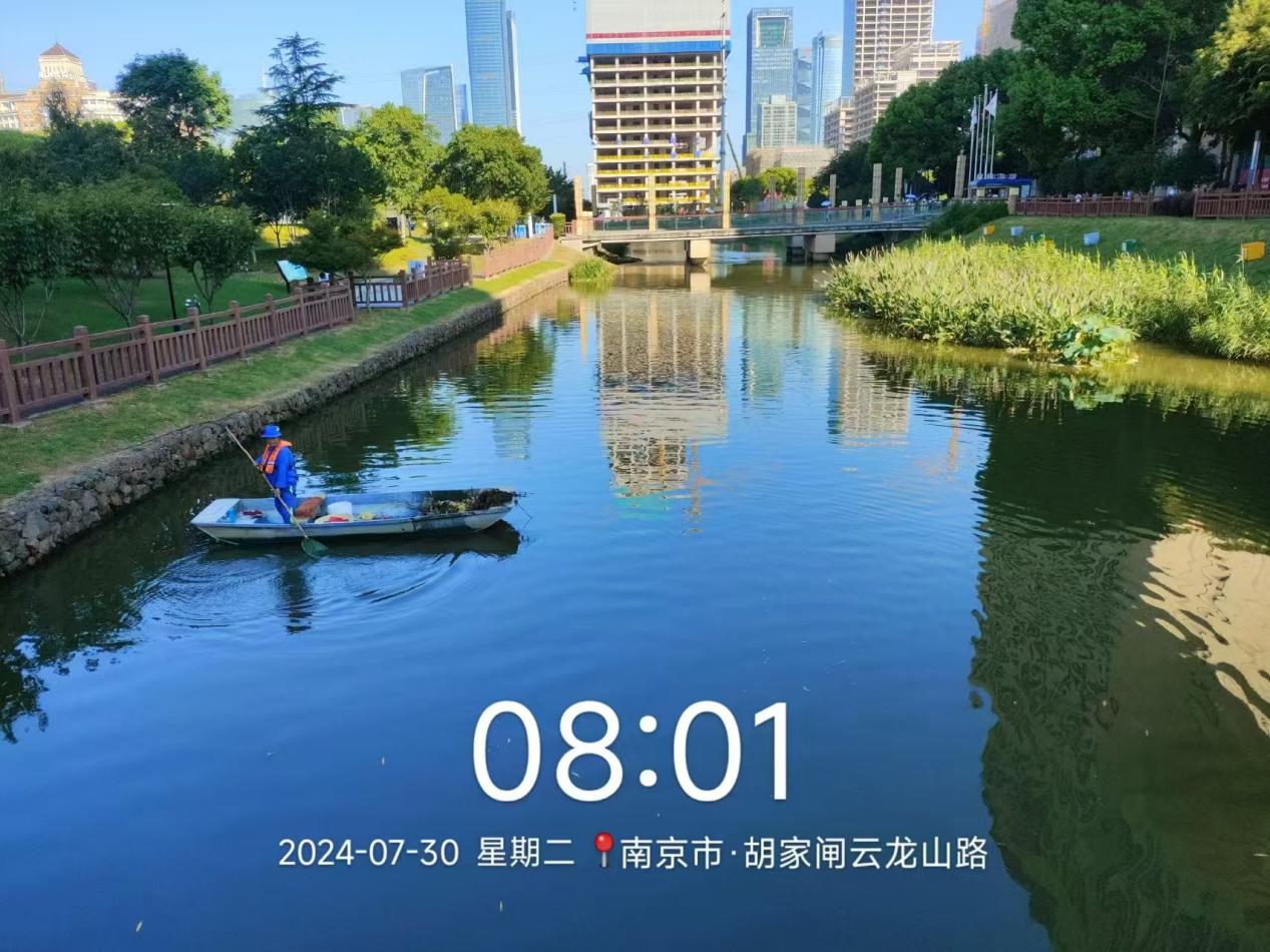 各养护单位保洁人员,在高温烈日下坚守岗位,打捞河道垃圾,保障水体清洁。(王天龙)