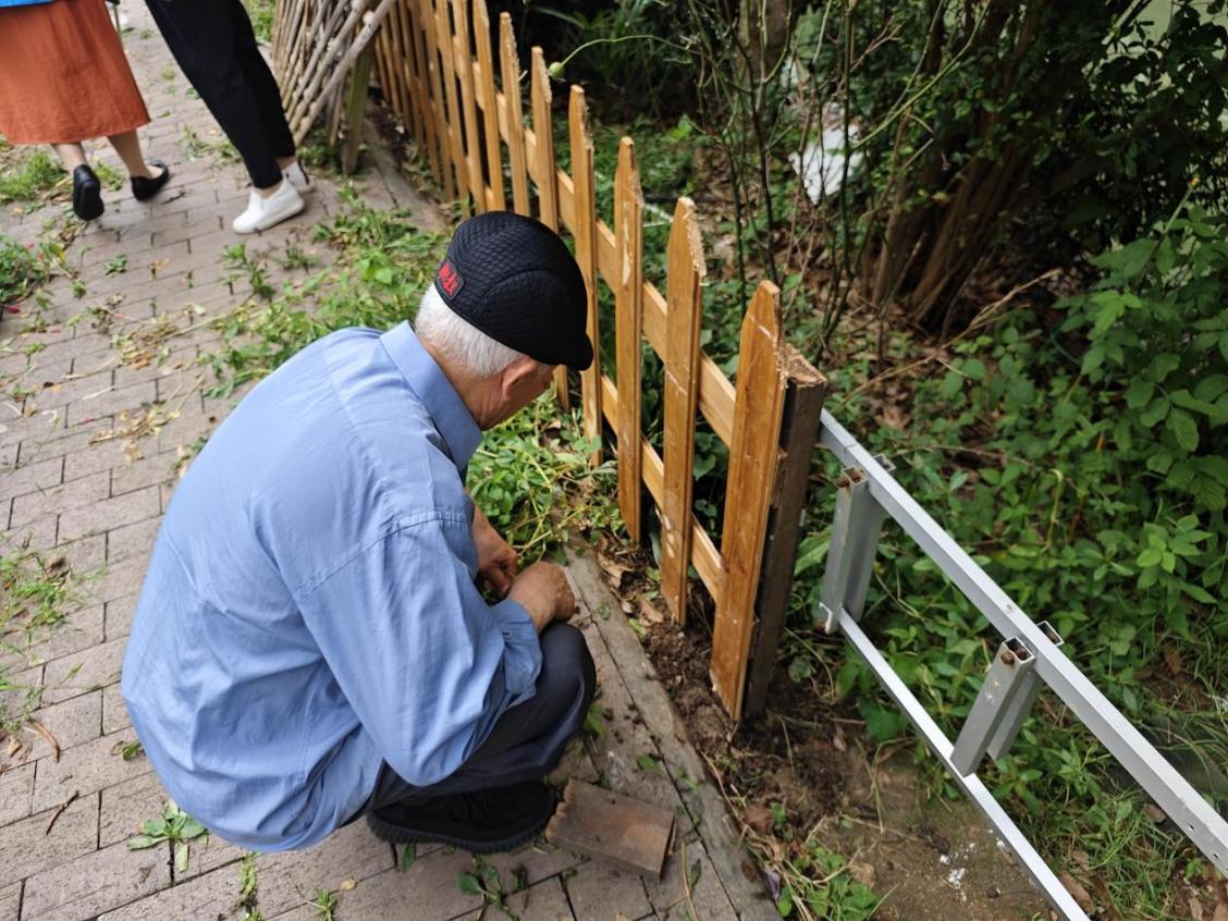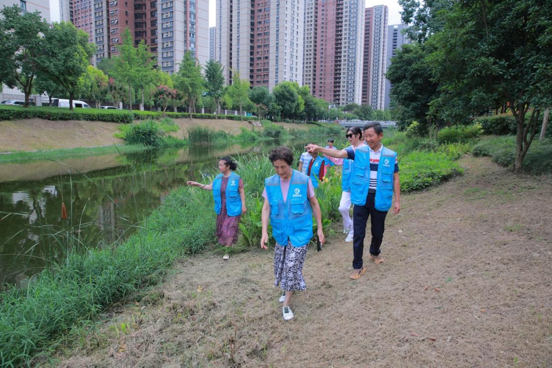 南苑街道组织党员居民、垃圾分类指导员和青少年志愿者,沿河清理捡拾塑料制品、枯枝杂草,老党员带着青少年志愿者拔除岸坡杂草,最后在垃圾分类指导员带领下分拣装袋。