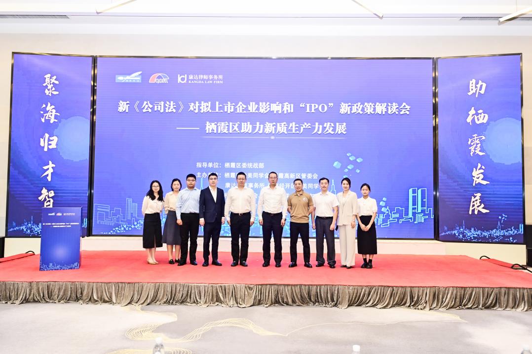 7月26日下午,由栖霞区委统战部、栖霞高新区管委会主办,栖霞区欧美同学会、南京经开区欧美同学会等承办的新《公司法》对拟上市企业影响和“IPO”新政策解读会在紫东•宁侨驿站成功举办。栖霞区委常委、统战部部长章晶,栖霞高新区管委会主任黄斌,张家港市委统战部副部长周晓敏,以及康达律师事务所合伙人,行业专家,资深律师和证券机构、栖霞高新区企业代表、欧美同学会部分会员近100人参加活动。