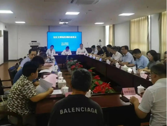 实地调研结束后,车明军组织召开全区博物馆建设工作座谈会,区文旅局局长熊茂林汇报了全区文博场馆工作开展情况;中国近代史遗址博物馆原副馆长刘刚、江苏省四方文物安全研究院常务副院长吴瞻分别围绕博物馆工作面临的机遇与挑战、传承与创新实践、馆际交流协作、释放文博事业活力等方面分享观点和见解;与会文博单位负责同志结合工作实际依次进行了交流发言。