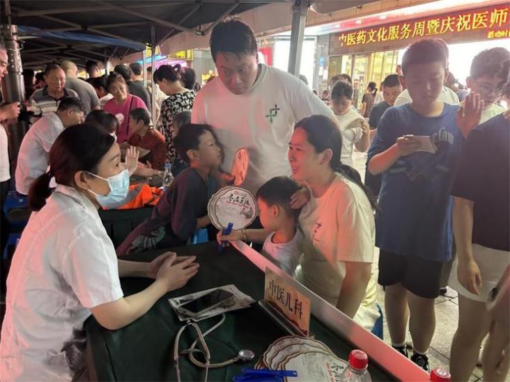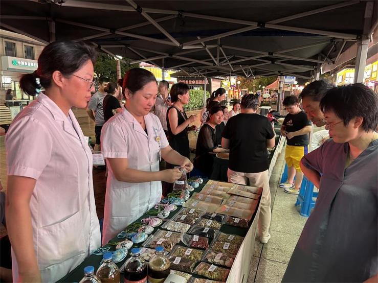 灯火璀璨,人流如织。8月5日晚的泰州市姜堰区步行街格外热闹,姜堰中医院举办的“中医药文化夜市”吸引了数以千计的市民前来问诊咨询。