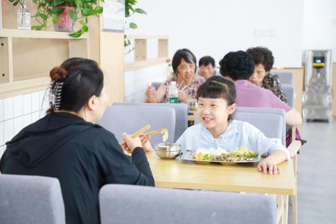 打牌、下棋、看电影……虽然还不是就餐时间,但在东台市东台镇北灶社区长者食堂,居民纷纷前来纳凉消暑,放松身心。依托优美整洁的用餐环境、一应俱全的配套设施,以及搭配合理、营养均衡、价廉物美的菜肴,北灶长者食堂今年七月上旬刚刚投入运营就吸引了周边众多群众的目光。而除了老年人这个主要群体,一些放暑假的孩子和工作打拼的年轻人也成了这里的常客。“菜很好吃,我特别喜欢吃狮子头。而且环境也很好,我们可以在这里学习、看书,和别的小朋友一起玩游戏,还可以在这里看电视。”小朋友杜沁彤指着今日菜单满足地说。“因为我们上班族中午休息时间比较短,这边吃饭的话节约了我们做饭的时间,也增加了中午休息的时间,很便利。”上班族梅潇雨深有感触。