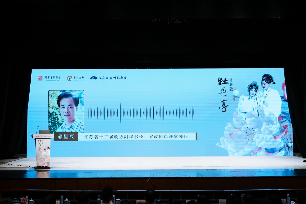江苏省十二届政协副秘书长、省政协昆评室顾问郝星辰通过音频送来祝福与期盼。他表示,江苏省政协多年来一直主办“戏曲走近大学生”系列活动,非常重视江苏省戏曲文化在高校的传承和传播,此次东南大学、江苏省苏州昆剧院面向各大高校进行人才召集,来排演一部完全由高校学子来演绎的校园青春版《牡丹亭》,正是意在推动昆剧艺术实现创造性转化、创新性发展的重大举措。