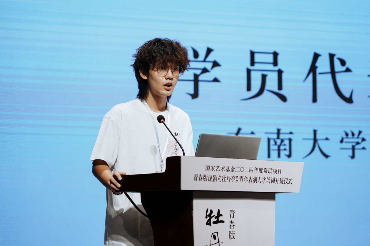 东南大学学生范宇鹏作为学员代表发言。中国戏曲学院学生王浩、上海戏剧学院学生王俊茜为现场观众带来了《牡丹亭•惊梦》中“山桃红”这一经典唱段,获得现场阵阵喝彩。