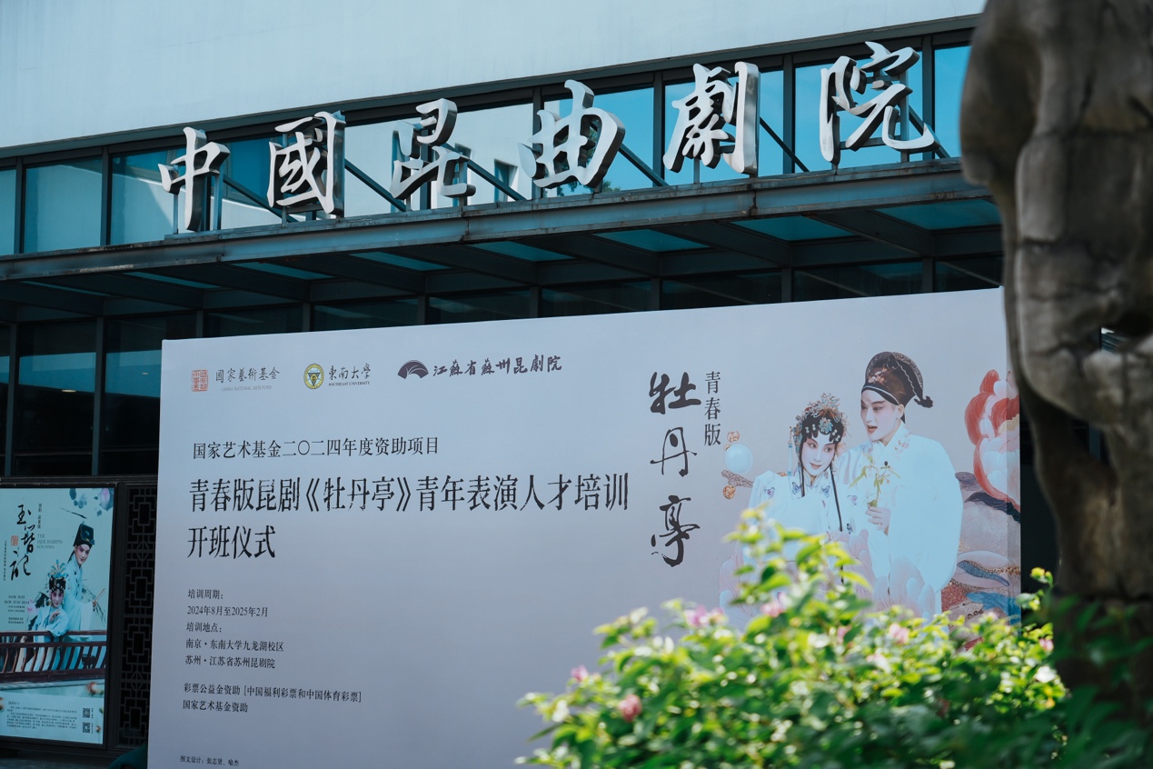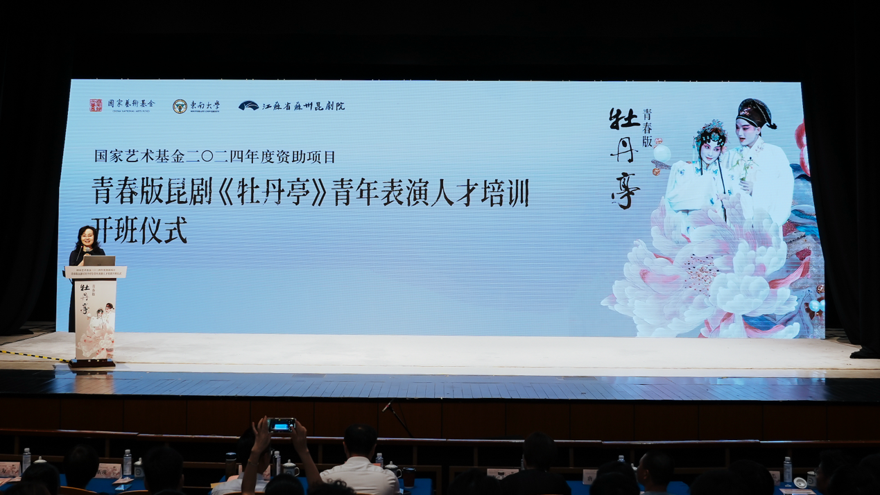 8月6日上午,东南大学负责的国家艺术基金2024年度资助项目“青春版昆剧《牡丹亭》青年表演人才培训”在江苏省苏州昆剧院正式开班。东南大学副校长孙立涛,苏州市文广旅局副局长李红,苏州戏曲博物馆馆长、党支部书记、江苏省苏州昆剧院副院长俞玖林,江苏省苏州昆剧院党支部书记唐荣,江苏省苏州昆剧院原院长蔡少华,江苏省苏州昆剧院副院长杜昕瑛,东南大学艺术学院党委书记赵天为以及全体导师、项目学员参加开班仪式。