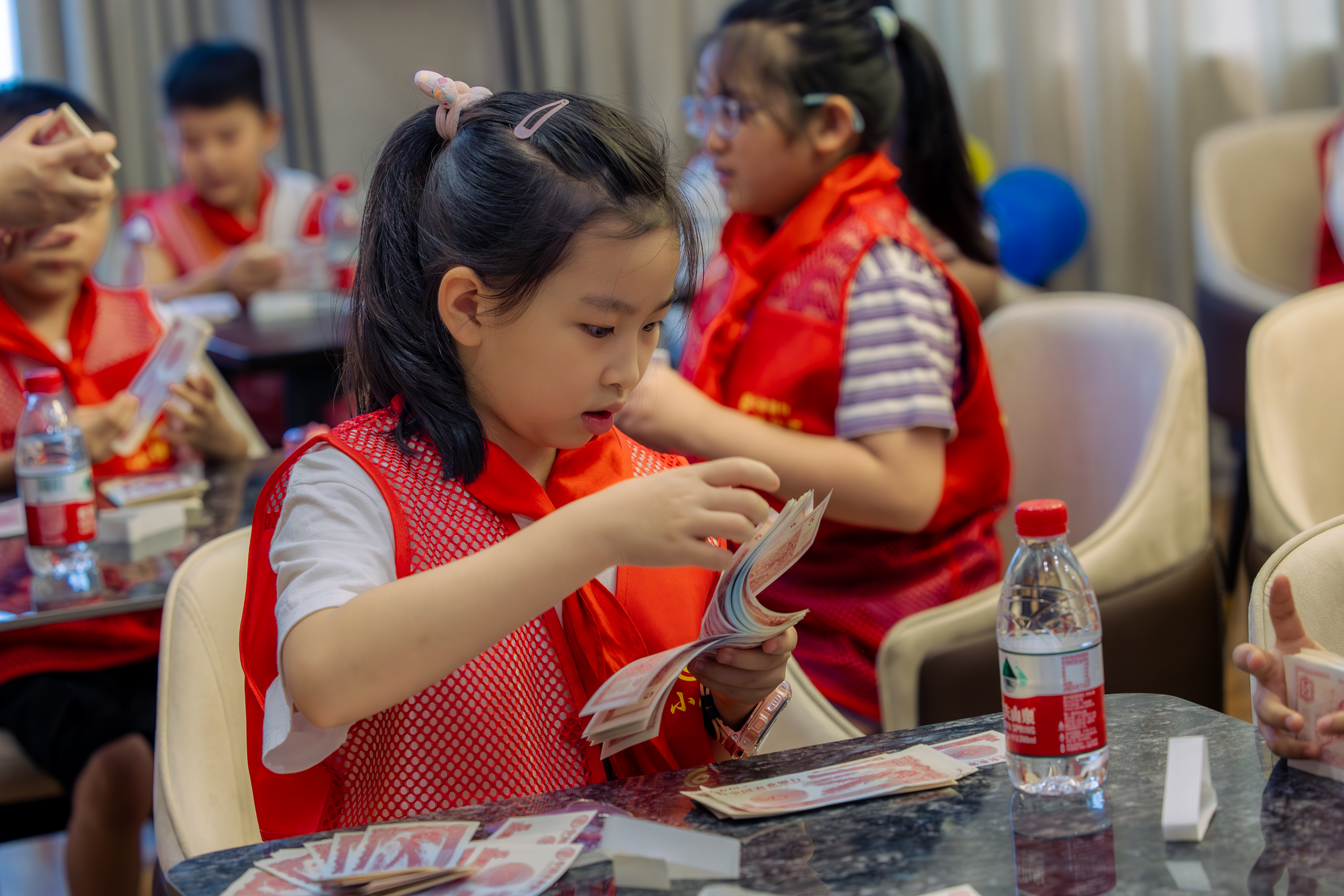 支行员工精心准备了少儿财商小课堂,向小银行家们详细地讲解了货币的起源、货币的作用以及货币的发展历程,深入浅出地为同学们介绍人民币如何合理地支配零花钱、如何培养财务管理习惯,并分享了零钱管理的“小妙招”。为了提升小同学们识别能力和防范意识,支行员工结合日常工作,将身边真实“反诈”“防诈”案例具体化、生活化,让孩子们扮演诈骗分子的目标客户,教会孩子们如何识别诈骗、防范诈骗及如何巧妙寻求帮助等反诈常识,并鼓励“小手拉大手”,将学到的知识带回家,带着家人一起防范诈骗,做最小的金融安全“守护者”,一起为守护安全支付环境贡献宝贵力量。