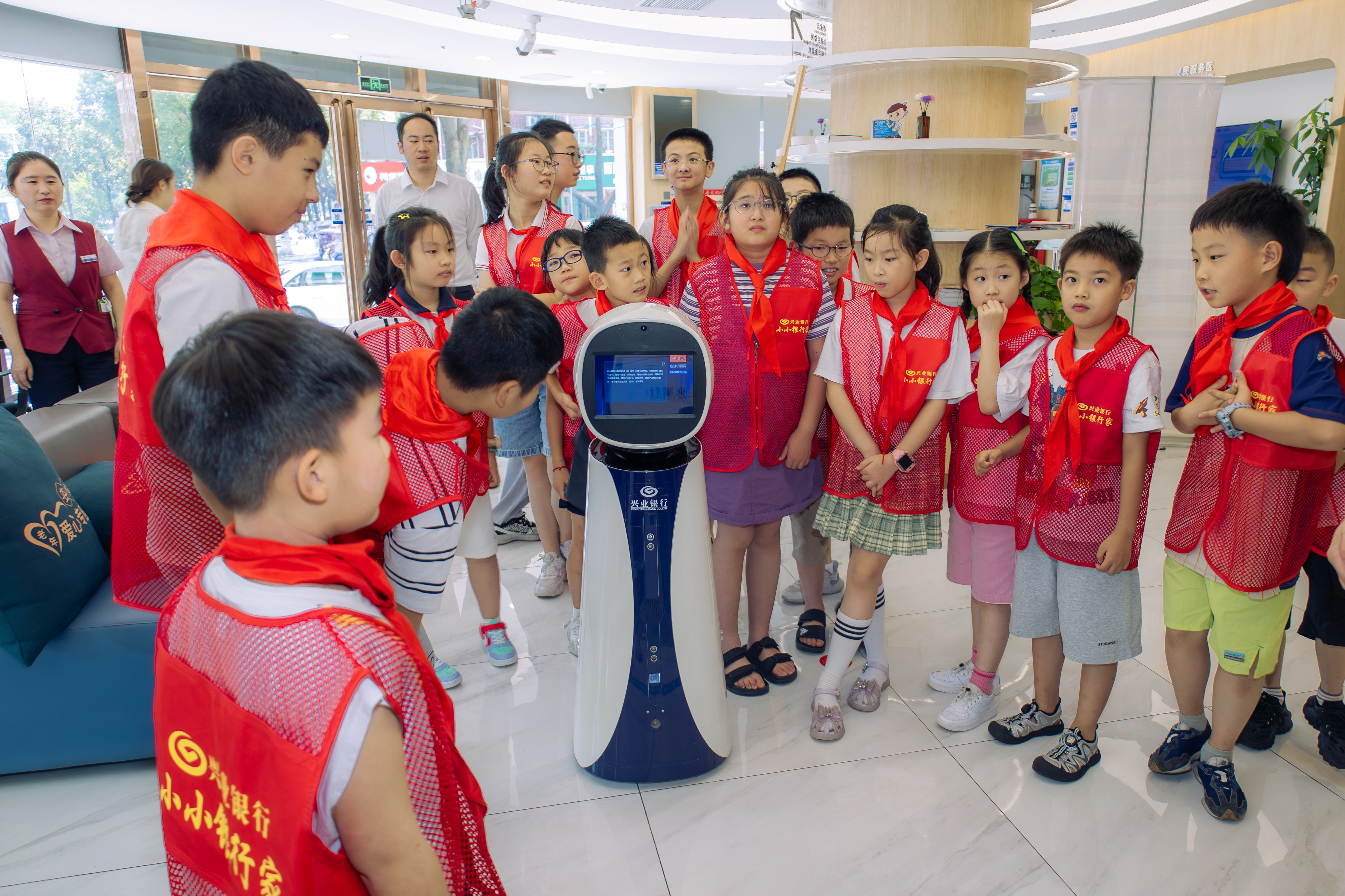 活动中,机器人小兴带着小银行家们参观了银行的各个区域,先后体验了叫号机、点钞机、智能柜台及ATM自助取款机等设备,了解各个岗位的运作机制,并且让同学们亲身体验了银行员工的工作流程。