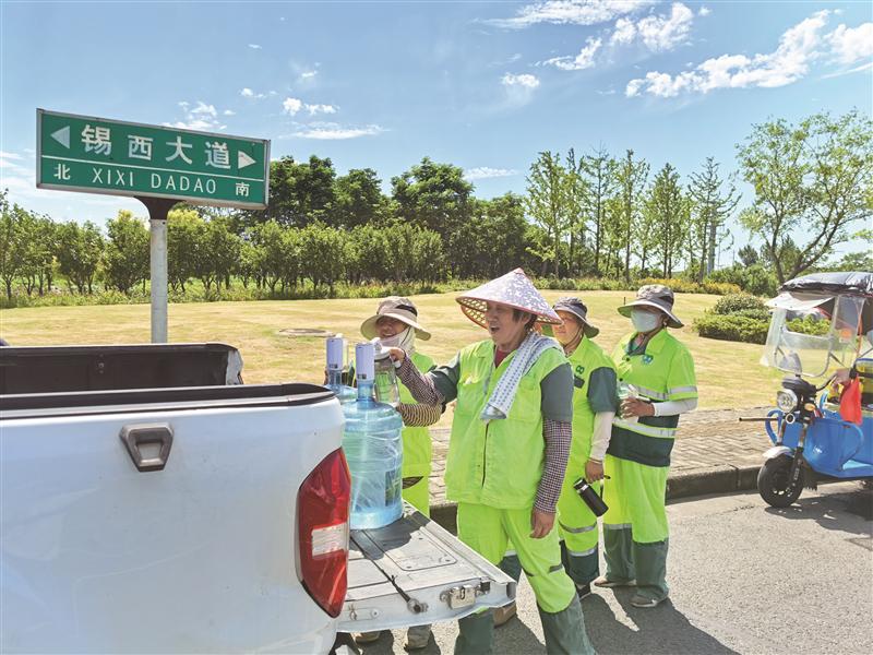 8月以来高温持续,城市“炎值”爆表,惠山区城管部门推出了一系列关心关爱一线岗位工人行动,通过发放夏季清凉大礼包、优化作业时间、开放爱心驿站、巡回送饮品等举措,让一线岗位工人消暑解渴感受清凉。(敖翔)