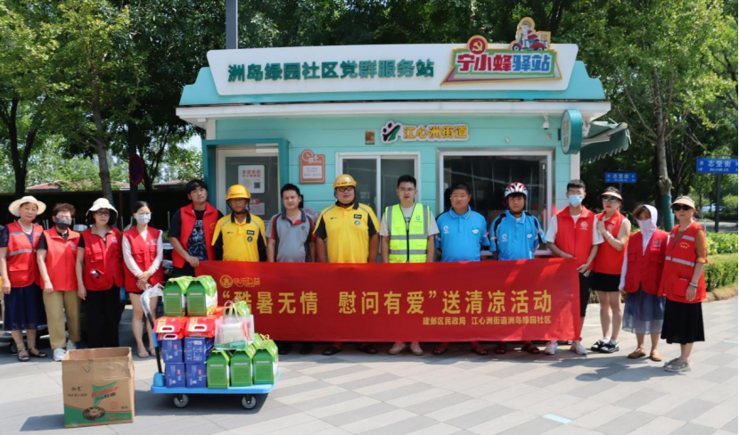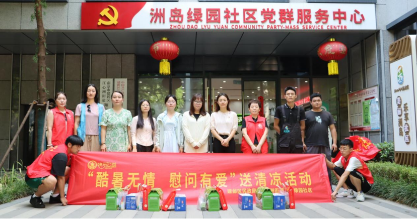 高温下,为有效落实社区探访关爱工作,给辖区高龄老人、独居老人以及辛勤工作的快递、外卖小哥送去夏季清凉。8月9日上午,南京建邺区江心洲街道洲岛绿园社区党组织开展了一场“酷暑无情 慰问有爱”送清凉活动,为辖区重点关爱的老年群体以及新业态新就业群体传递一份温暖与关怀。