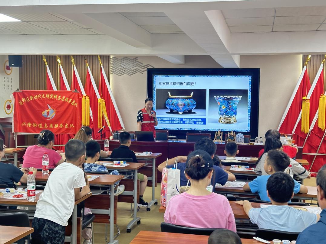 8月7日,南京市建邺区兴隆街道桃园居社区举办“绘千里江山 筑民族之魂”主题活动,吸引了辖区众多青少年及家长的热情参与。此次活动的主要内容是制作掐丝珐琅杯垫,通过体验这一传统工艺,让青少年感受中华传统文化的魅力。