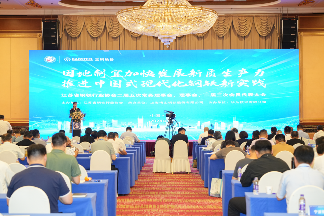 8月13日,“因地制宜加快发展新质生产力,推进中国式现代化钢铁新实践”大会暨江苏省钢铁行业协会二届五次常务理事会、理事会、二届三次会员代表大会在南京召开。此次会议由江苏省钢铁行业协会主办,上海梅山钢铁股份有限公司承办。与会嘉宾和参会代表齐聚一堂,就如何因地制宜、找准定位,发挥自身技术、资源优势,探索一条具有中国特色的现代化钢铁发展之路进行了交流。