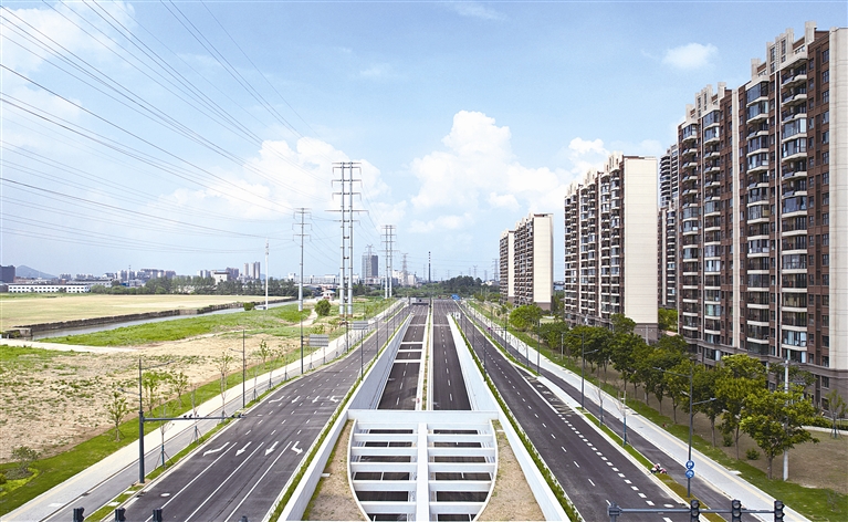 作为江阴城市快速路网的关键组成部分,新澄杨线一期项目全长2.78公里,采用地面、隧道、高架相结合的快速路建设模式。目前,施工现场沥青摊铺、标志标线、道路绿化基本完成,项目建设全面进入冲刺收尾阶段。(丁家骏 摄)