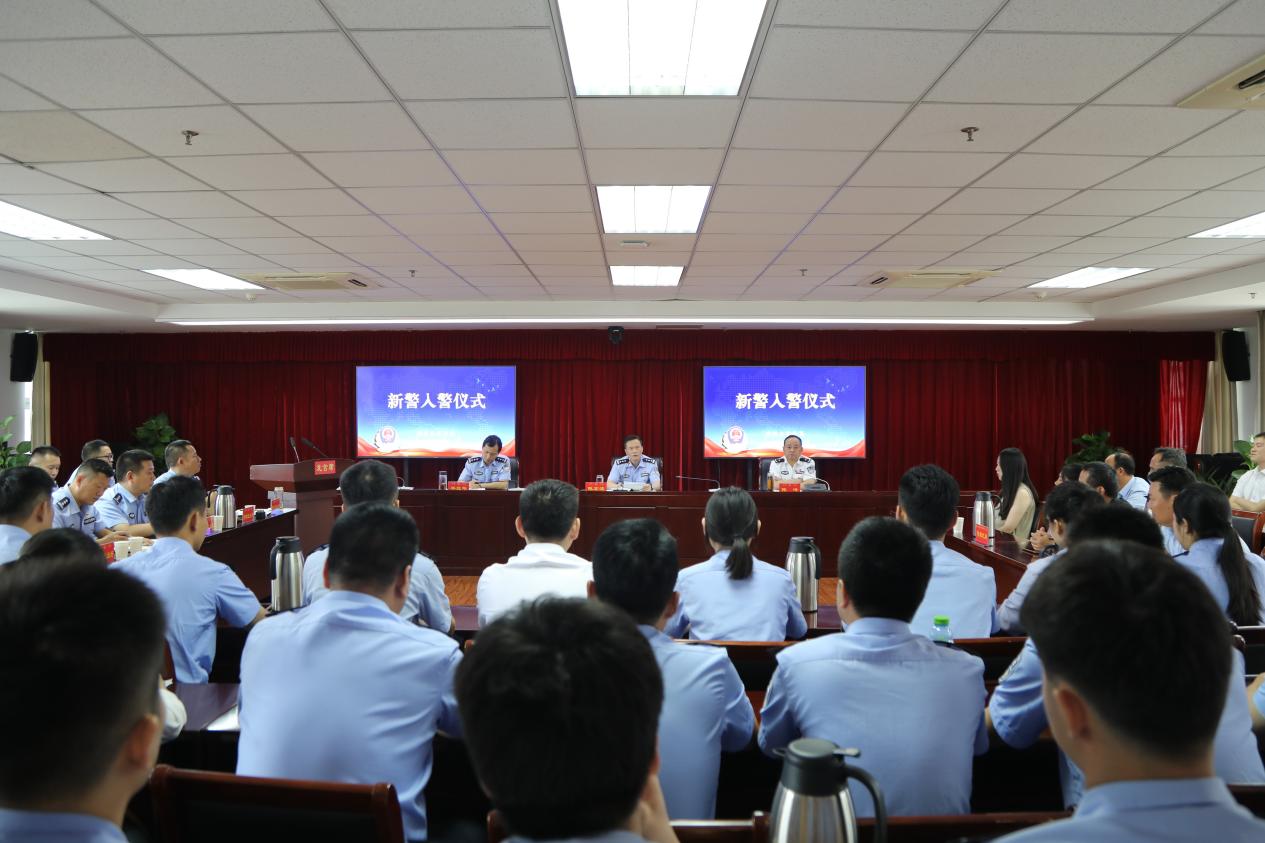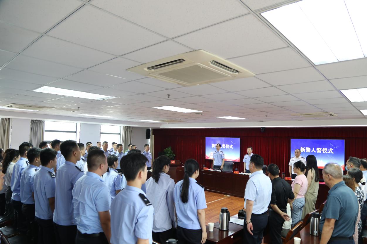 入警仪式在雄壮的国歌声中拉开帷幕。入警仪式上,新警代表、警师代表、新警单位负责人代表和警属代表分别作交流发言,26名新警先后分享了入警体会和感悟。