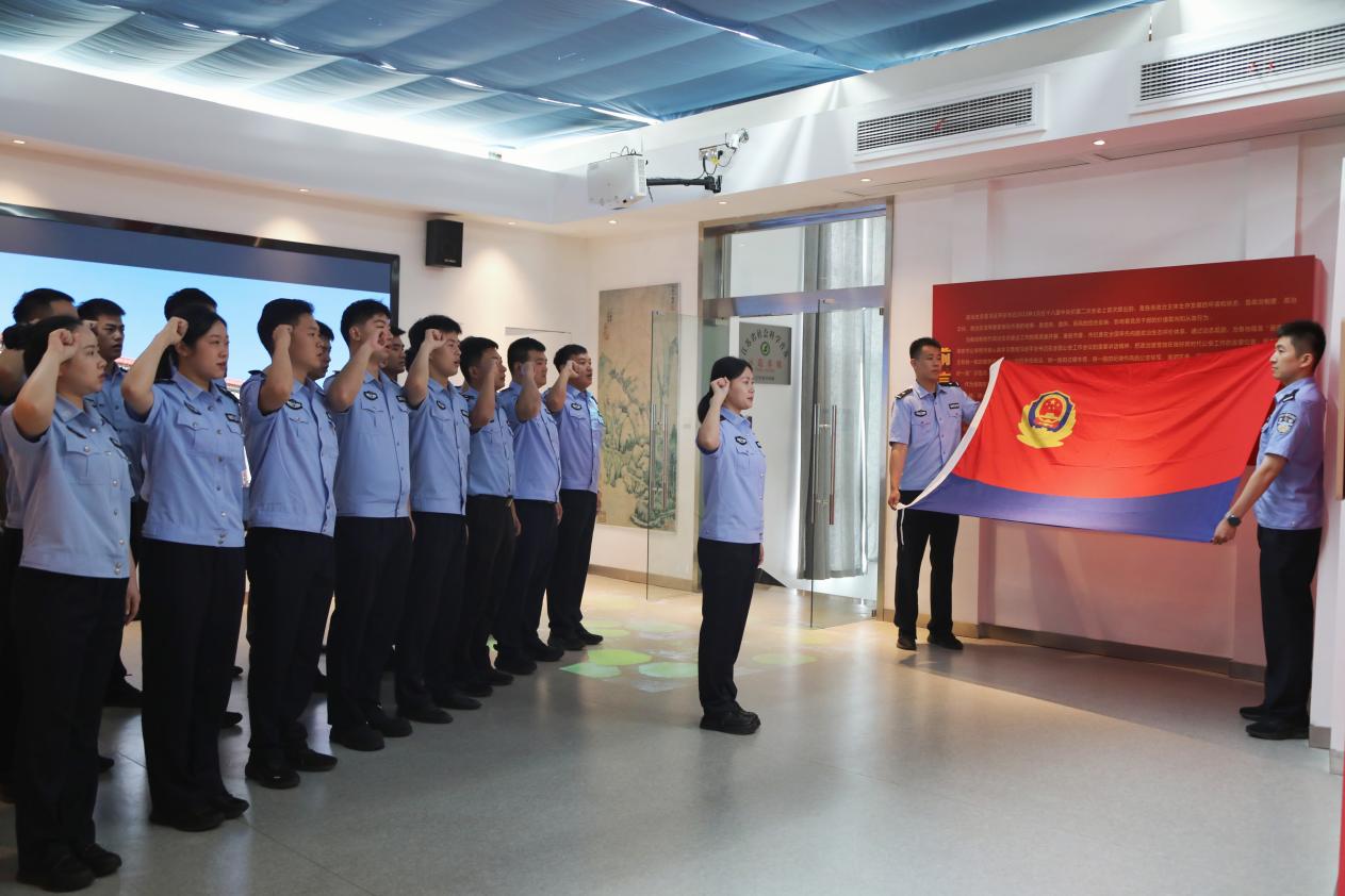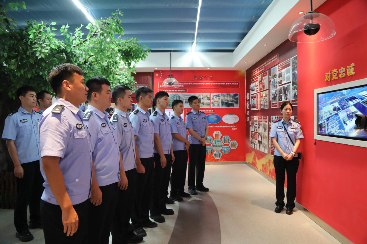 在淮阴公安分局政治忠诚教育馆,全体新警面向警旗庄严宣誓。随后,全体新警参观了淮阴公安分局政治忠诚教育馆。