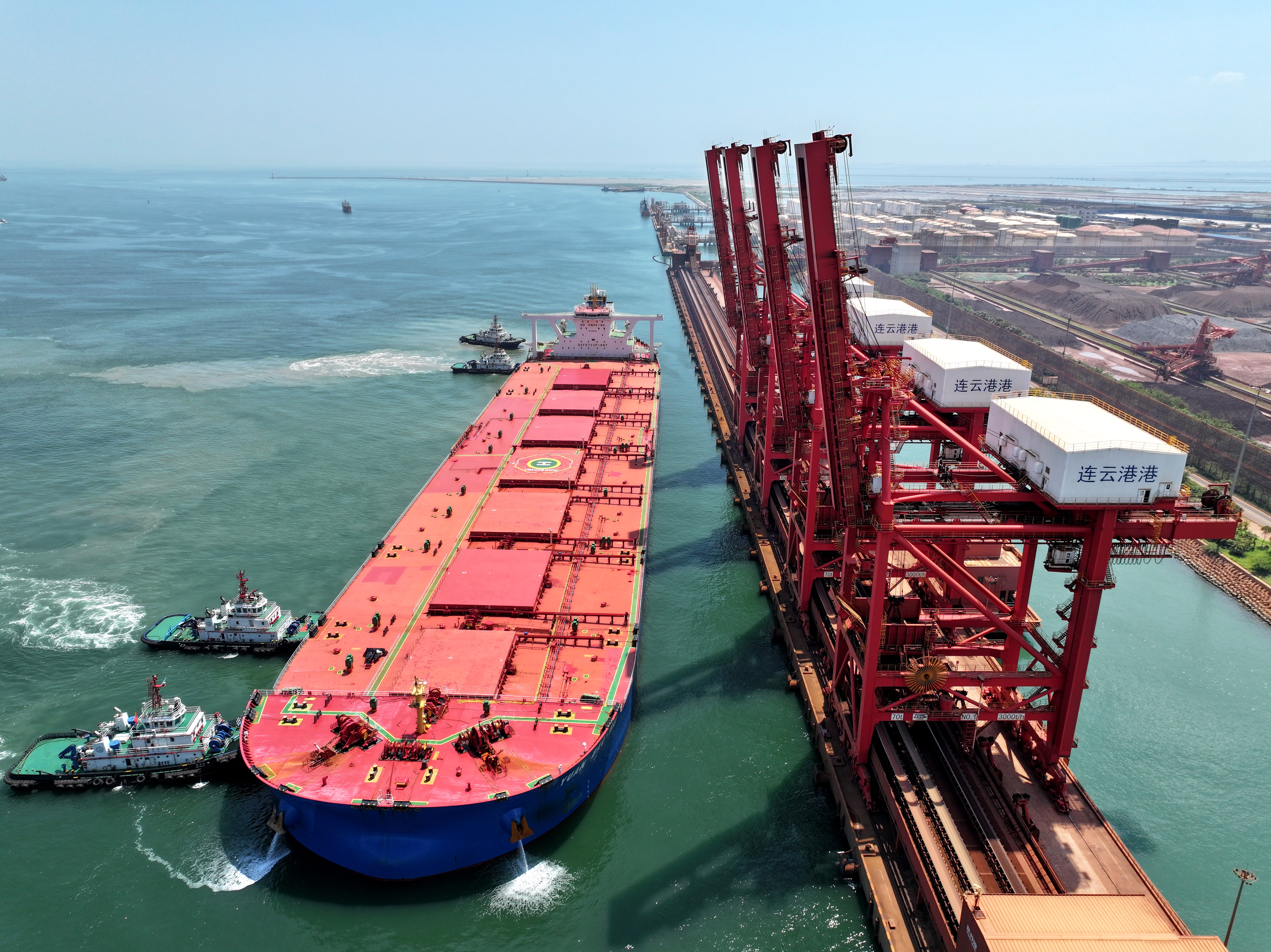 连云港口岸坐拥江苏省唯一40万吨级铁矿石码头,今年以来,共有17艘40万吨级船舶顺利靠泊。巨轮进出为长三角及陇海沿线地区的钢厂提供更为便捷的原材料进口通道,助力连云港港加快融入长三角发展、做足陇海线文章,充分发挥国际枢纽海港功能。