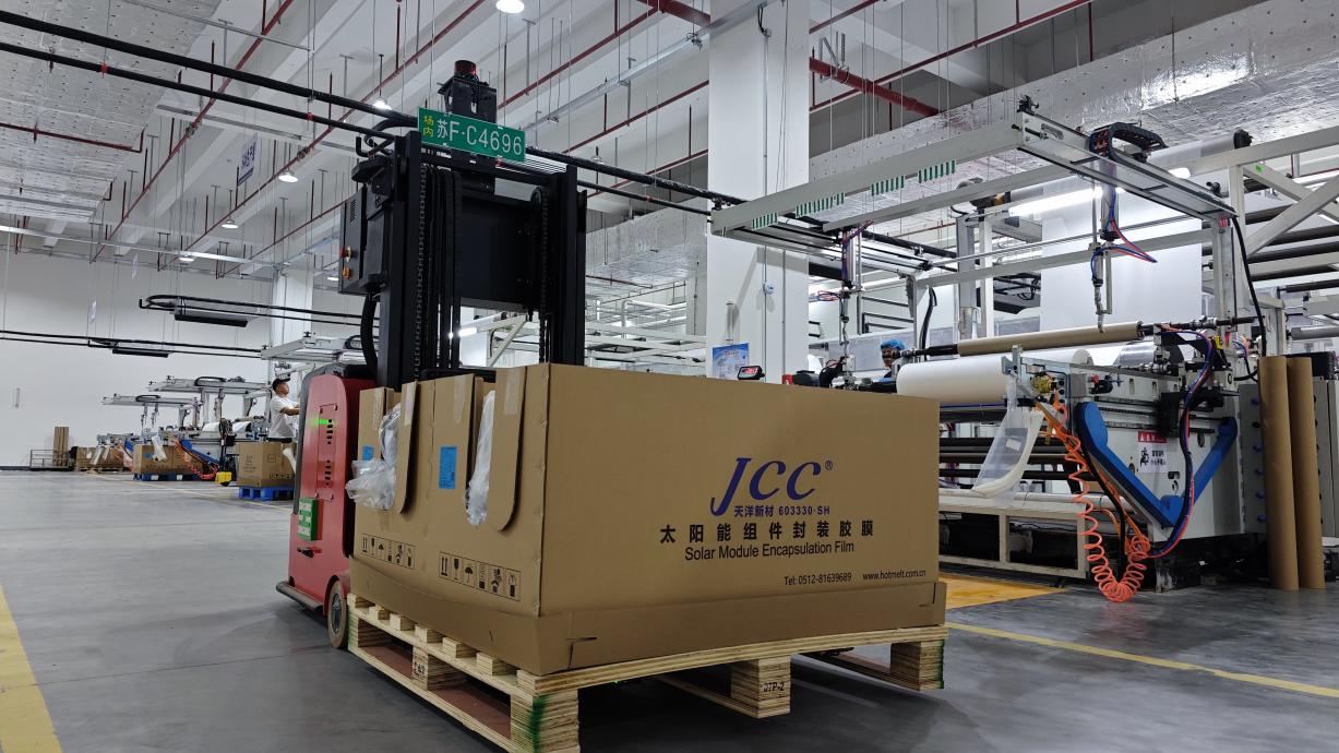 走进江苏如东洋口港经济开发区临港工业区南通天洋光伏材料科技有限公司EVA封装胶膜生产车间,只见工业机器人挥舞“手臂”,AGV智能小车穿行其间,不间断地拿料、取料、投料。作为南通市重点项目,天洋光伏材料项目自6月份投产以来,月产1000万平方米光伏电池封装胶膜,不到两个月的时间,已实现销售额约8000万元。