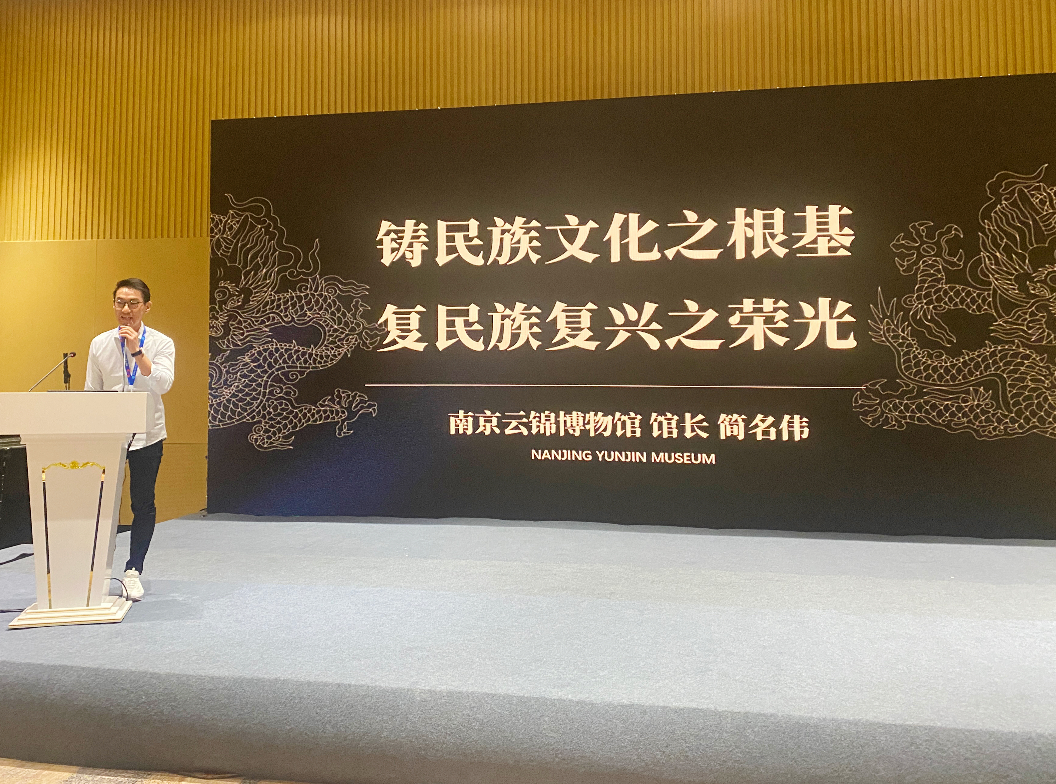 在此次大会上,为促进博物馆之间交流与互鉴,中国博物馆协会民族博物馆专委会举办“铸牢中华民族共同体意识的博物馆实践学术研讨会”。由中国博物馆协会民族博物馆专业委员会常务委员——南京历代云锦博物馆馆长简名伟作为新晋国家二级博物馆代表受邀进行专题分享。