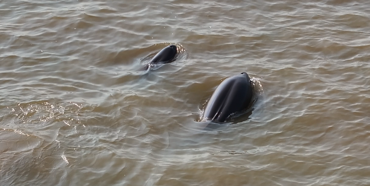 母子豚航拍图 江豚摄影志愿者翟彬摄