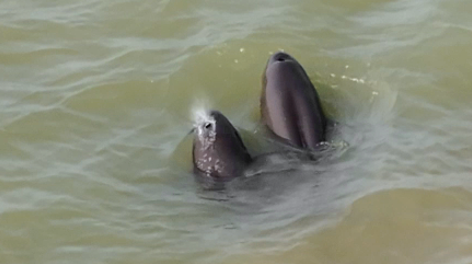 这几日,江豚摄影志愿者又拍摄到了母子豚在江水里的“欢乐亲子秀”,画面萌化人心。