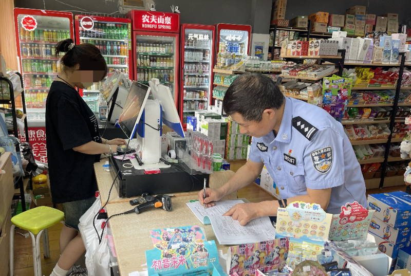 民警重点检查了校园周边的商铺,民警以校园周边书店、文具店、餐饮摊点、超市等场所为重点,对商铺的经营资质、进货清单、存放物品等进行查看,排查管制刀具、“三无食品”、非法出版物、低俗文具等。督促经营者切实履行经营责任,配合学校管理要求,严禁向学生出售低俗书刊、烟酒等不利于未成年人健康成长的物品。